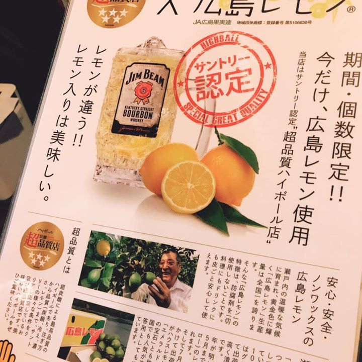 広島県産の香り高いレモンを使用したハイボールは一味違うんです!!
