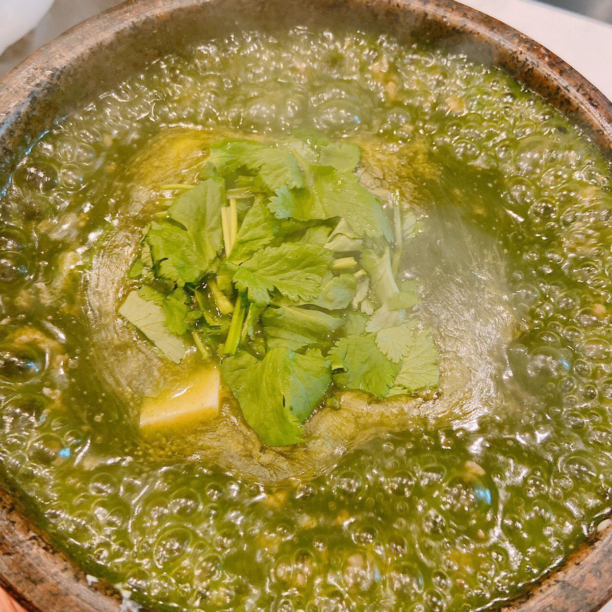 パクチーをふんだんに使用した緑の麻婆豆腐❗️
