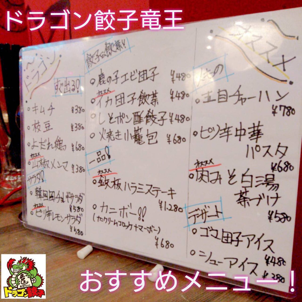 ドラゴン餃子竜王おすすめメニュー一新致しました。美味しい料理満載です!!