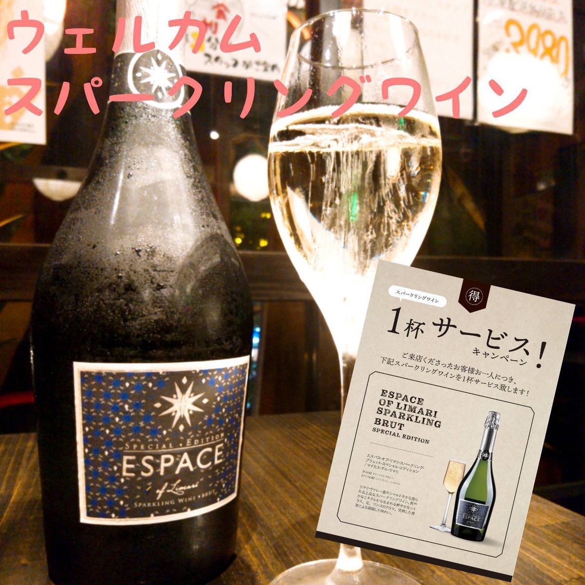 スパークリングワイン!サービス!!ご来店して下さった。お客様に!1杯サービスしちゃいます
