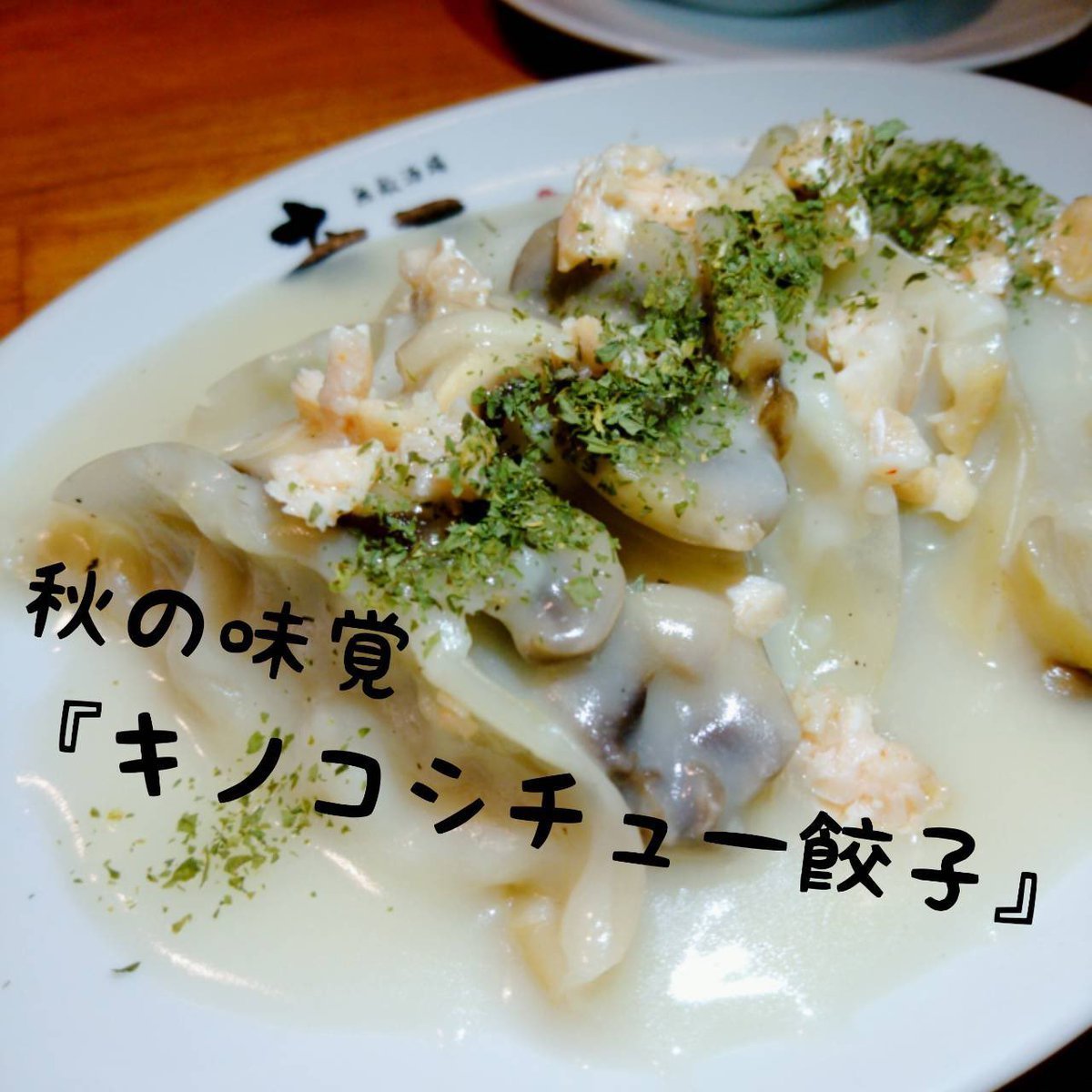 秋のおすすめ!!『キノコシチュー餃子』キノコの旨味たっぷりな餃子です!