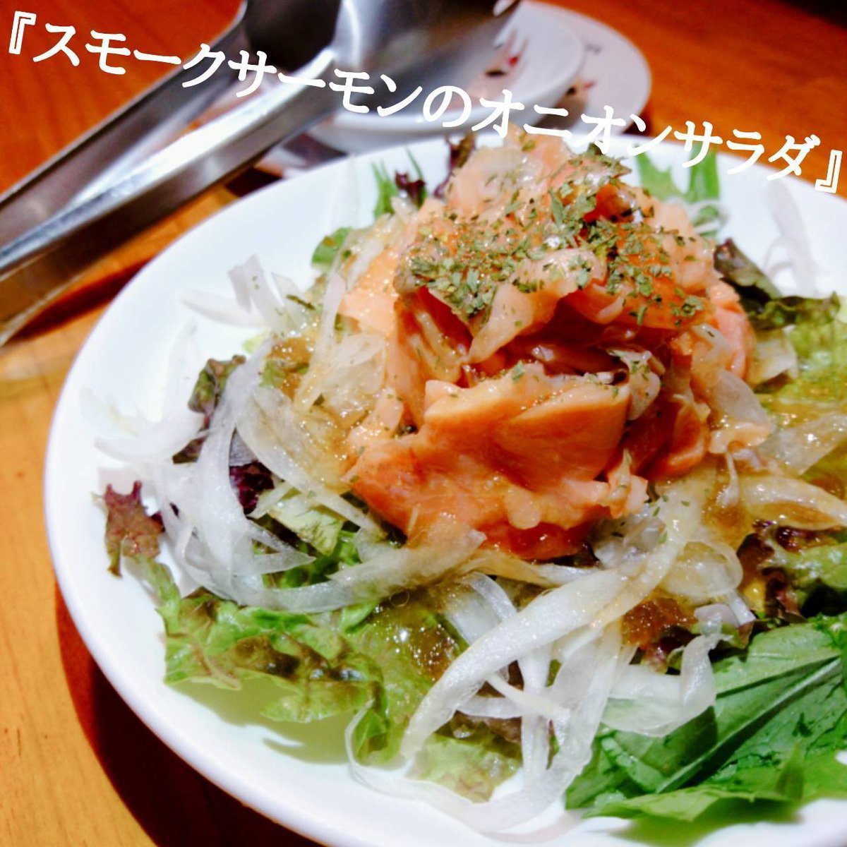このオススメが食べれるのも後少し!!燻製の香りがいい感じ!!『スモークサーモンのオニオンサラダ』