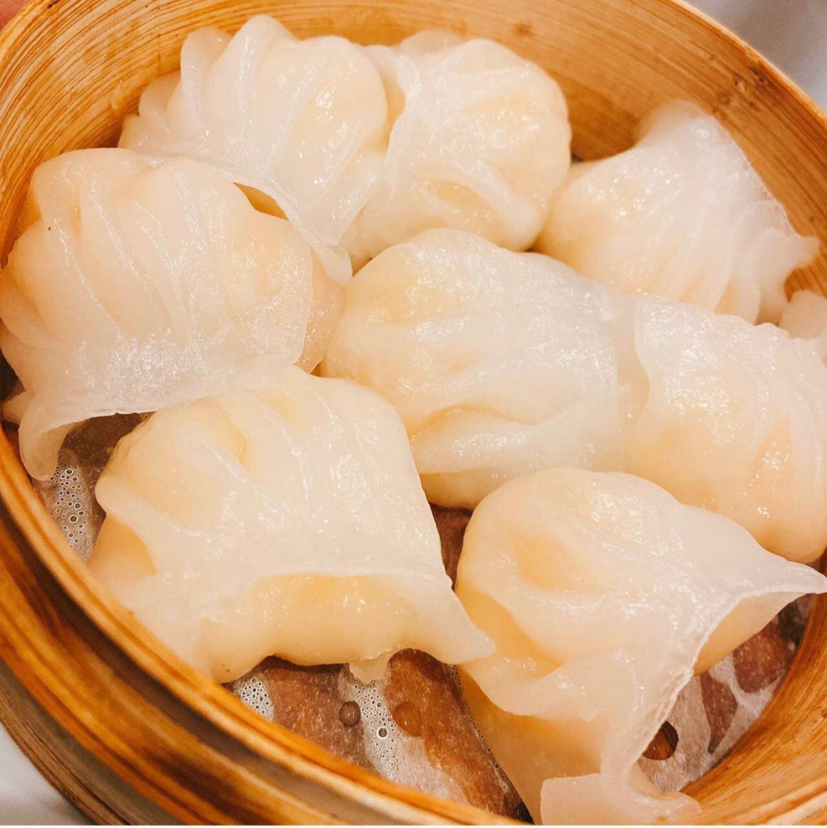 大人気のぷりぷりの「エビ餃子」!蒸し餃子の中でも1番人気!!中にぎっしりエビが入っています。