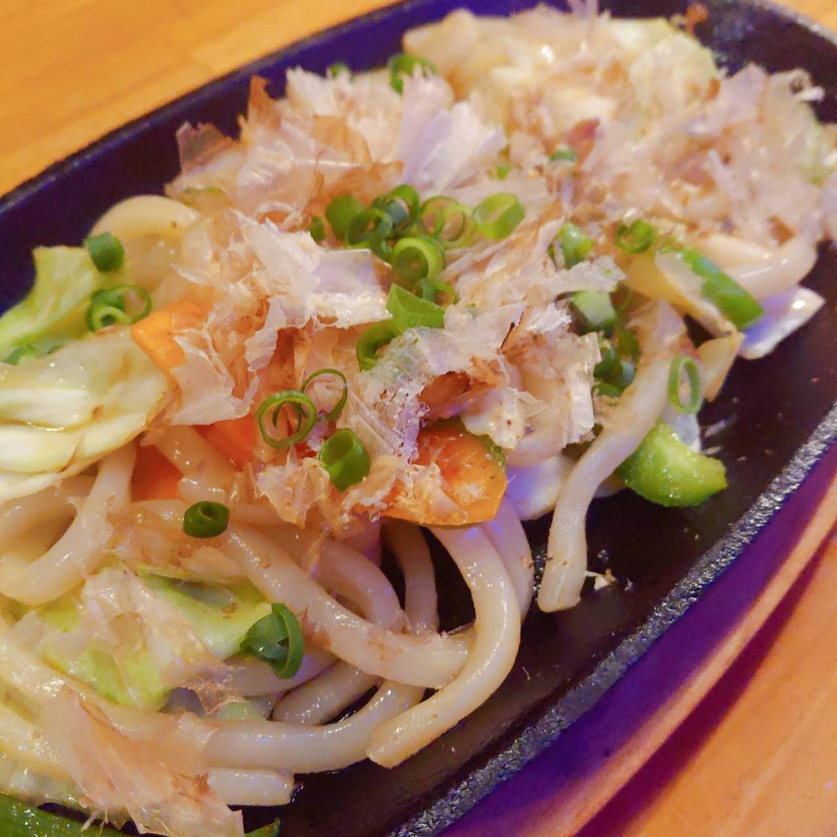 色んなオススメ試作中!!鉄板で熱々のまま食べれる。【特製焼きうどん】出汁の旨みたっぷり!!
