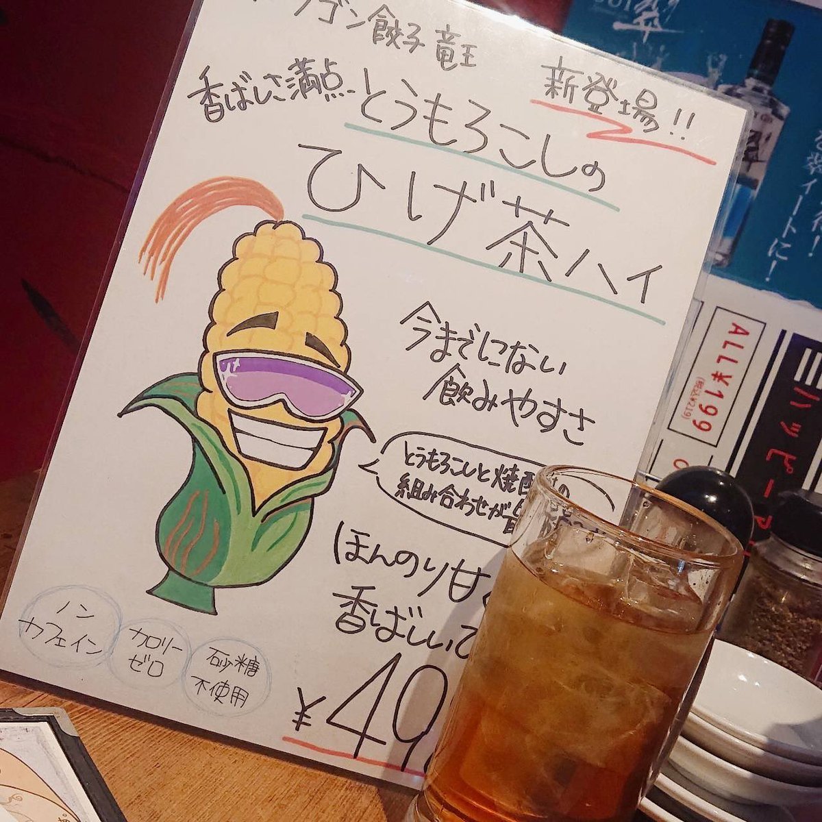 ドラゴン餃子竜王の人気ドリンク!!トウモロコシのひげ茶ハイ!ほんのり甘いくて飲みやす!!